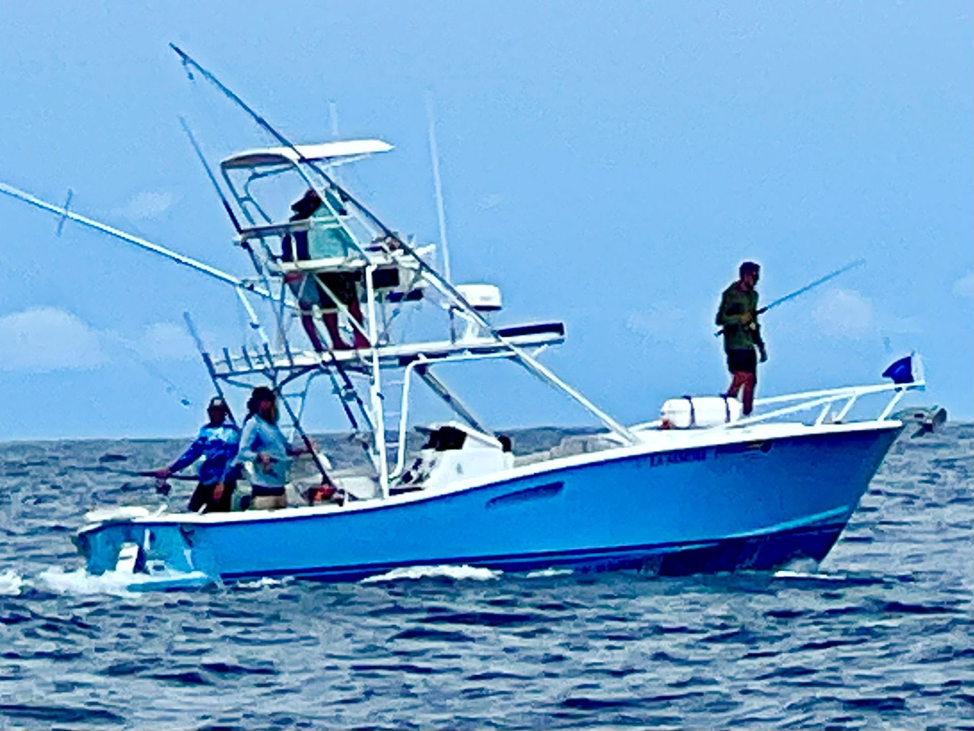 The Leviathan is a 2011 28 foot Dusky that has been completely restored with new paint, cushions, electronics, sound system, shade cover and a 300hp Mercury SeaPro motor. You are sure to be comfortable all day.